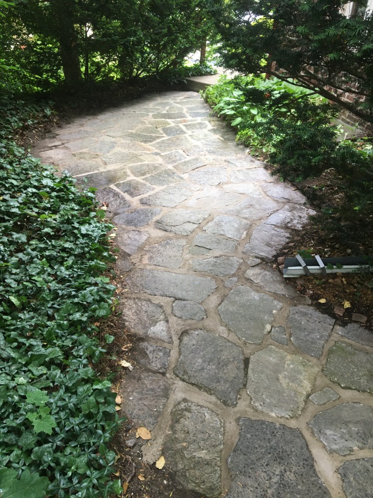 replaced mortar within flagstone pathway