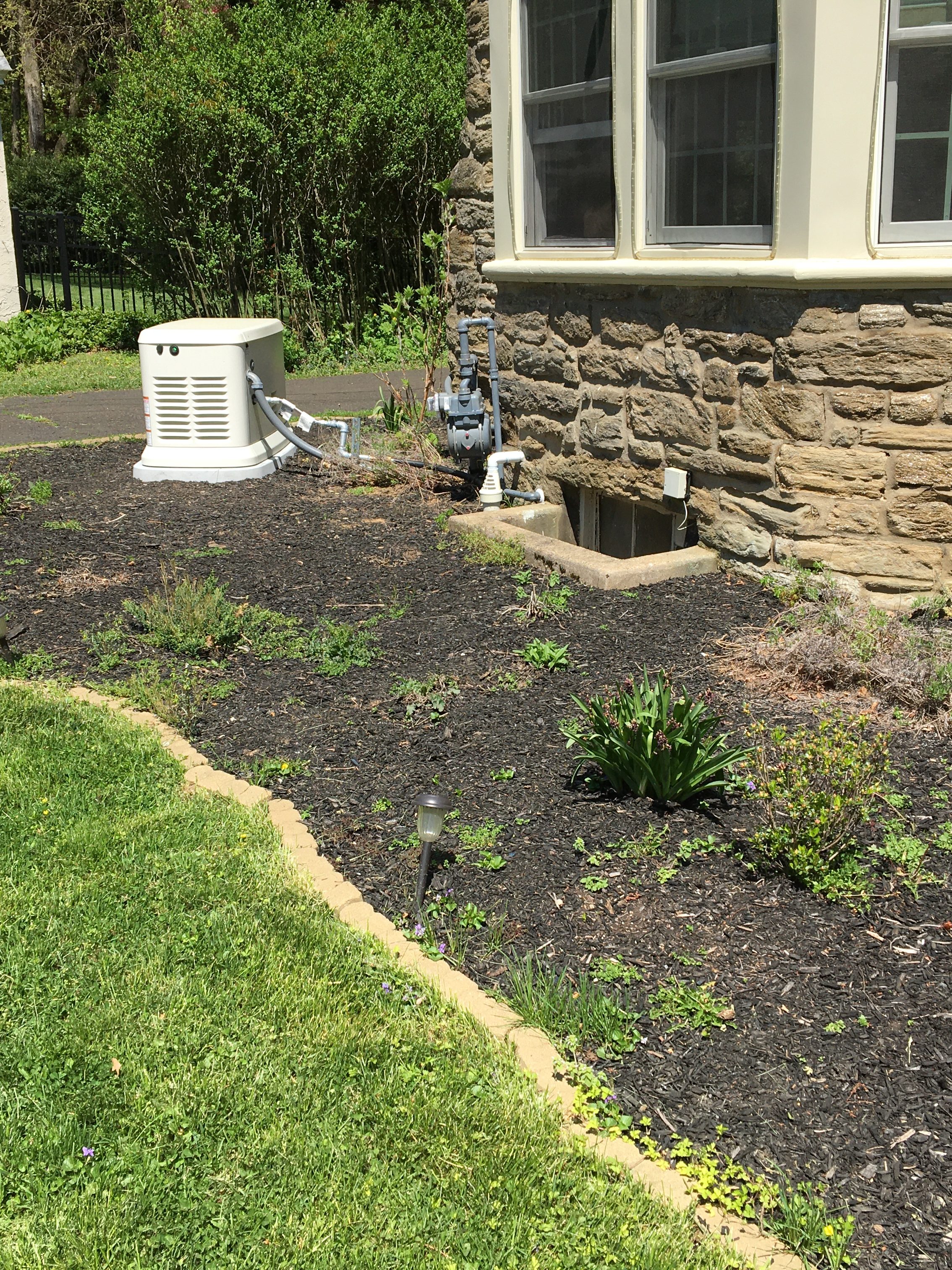 Mulched, planted a rose, creeping juniper, japanese hollies, heuchera, mini-fountain grass, sedum and rearranged excavated rocks left on property as small borders.
