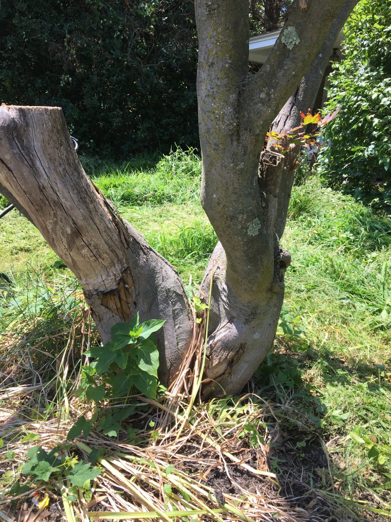 - As you can see in Pic 2, when a tree matures and you weedwhack around the tree, if there is no mulch, most landscapers will end up weedwhacking the tree. For many if not most tree species, such as this Japanese maple, weedwhacking leads to bark removal and opens up a wound (trees are like people!). Wounds can be infected with fungal or bacterial pathogens and, as you can see, lead to gradual tree death. So, by mulching around the base of the tree, you eliminate the need to weedwhack up to the tree. Thus, you save the cost of THE TREE already growing there, removing the DEAD TREE and potentially planting a NEW TREE!